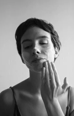 Coloco un poco de cantidad sobre el rostro húmedo y realizo movimientos circulares.